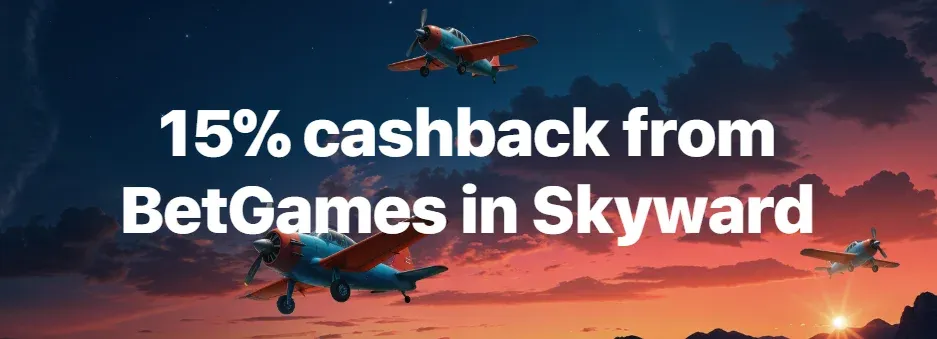 1Win BetGames o'yinlarida Skyward uchun 15% gacha keshbek beradi — yo'qotilgan tikishlarning qismi har hafta qaytariladi. Aksiya 2024-yil 22-oktabr — 28-dekabr kunlari, asosan dam olish kunlari (juma–yakshanba) amal qiladi.