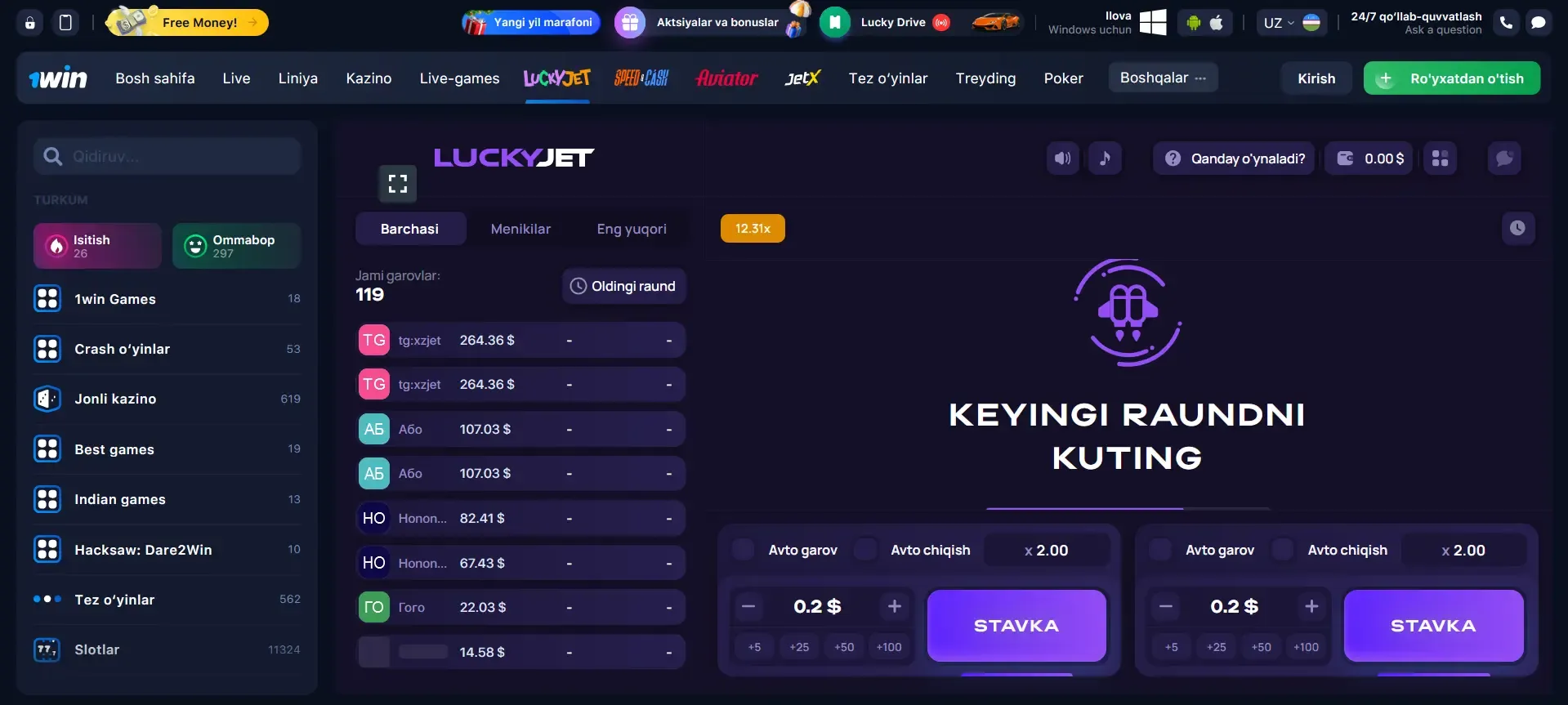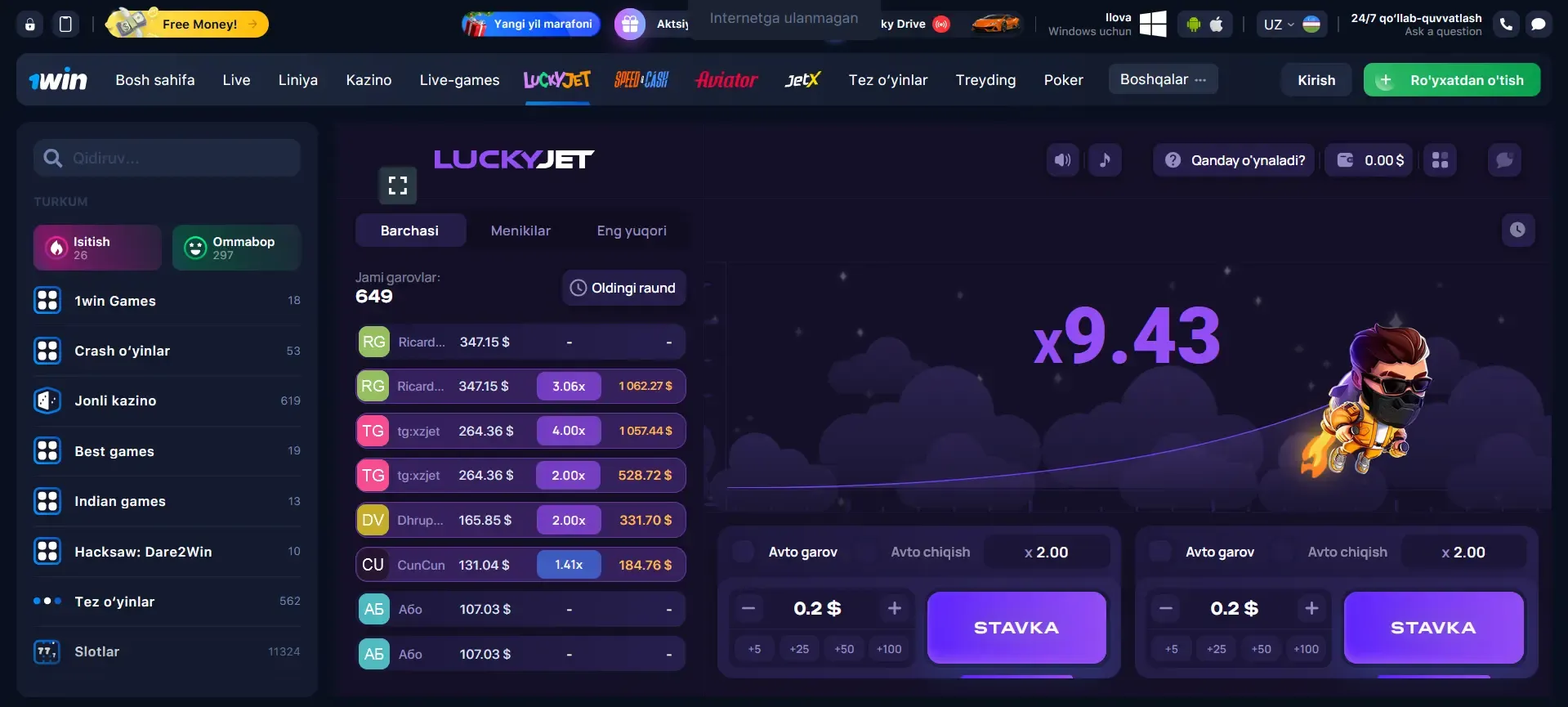 1Win dagi Lucky Jet o'yini O'zbekistonda