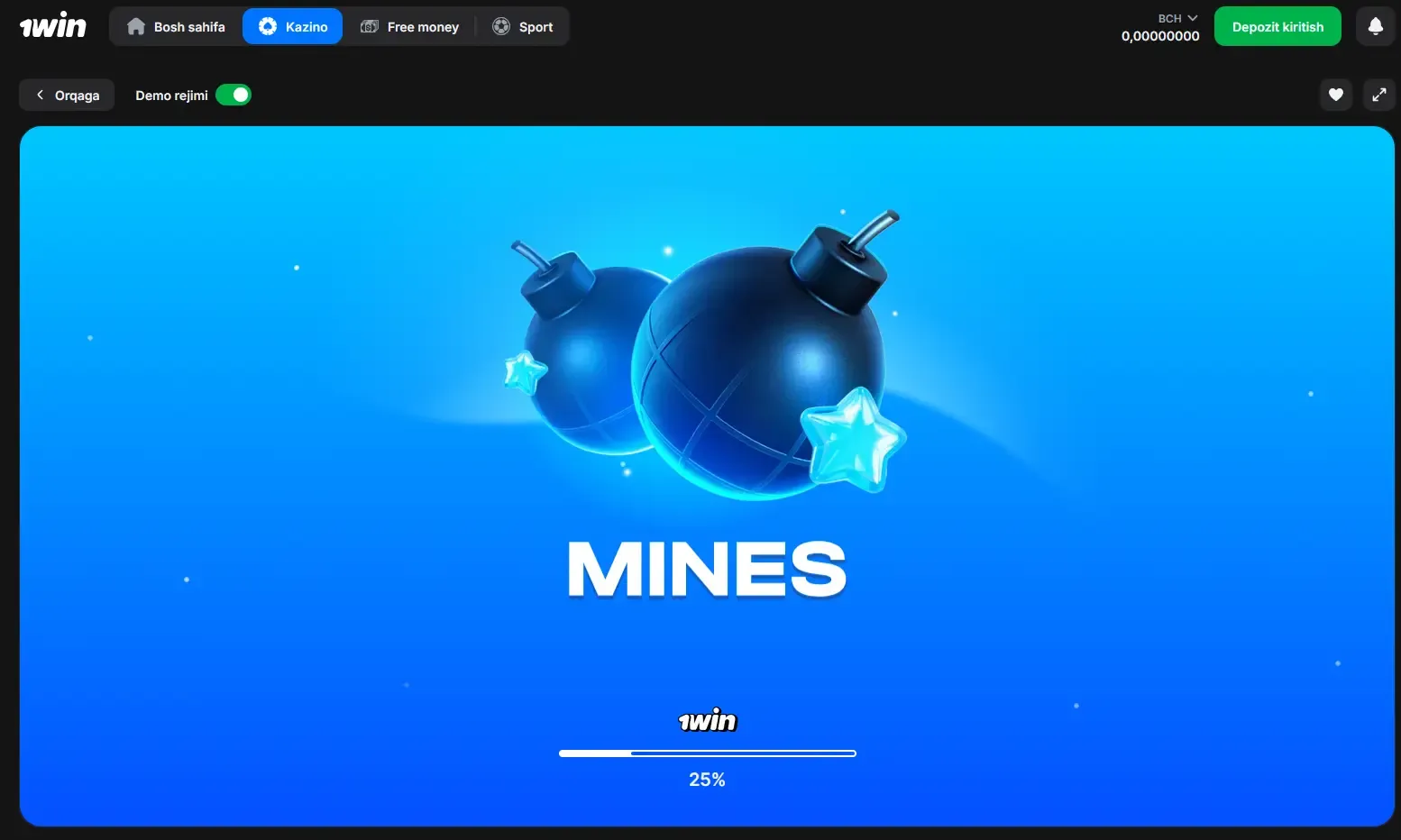1Win saytida Mines oтАЩynash tajribadan qatтАЩi nazar barcha oтАЩzbekistonlik oтАЩyinchilarni quchoqlab oluvchi sodda jarayonni oтАЩz ichiga oladi.