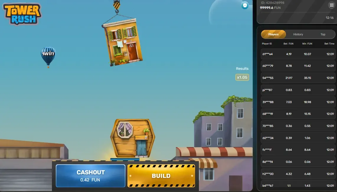 1Win OтАЩzbekiston oтАЩyinchilari uchun Galaxsys kompaniyasidan Tower Rush тАУ nostaljik qurilish oтАЩyinlarini zamonaviy qimor mexanikalari bilan birlashtirgan hayajonli mahsulotni taqdim etadi. Ushbu innovatsion oтАЩyin sizdan qavat-qavat minoralari qurishni talab qiladi, bu yerda har bir muvaffaqiyatli joylashtirish multiplikatoringizni oshiradi va yutuq imkoniyatlarini kengaytiradi. 100 soтАЩmdan 10,000,000 soтАЩmgacha moslashuvchan stavkalar, 96.12% dan 97% gacha yuqori qaytarish darajasi va uchta noyob bonus funksiyalari bilan Tower Rush ham ehtiyotkor qurilish quruvchilar, ham dadil tavakkalchilar uchun ajoyib oтАЩyin tajribasini taqdim etadi.