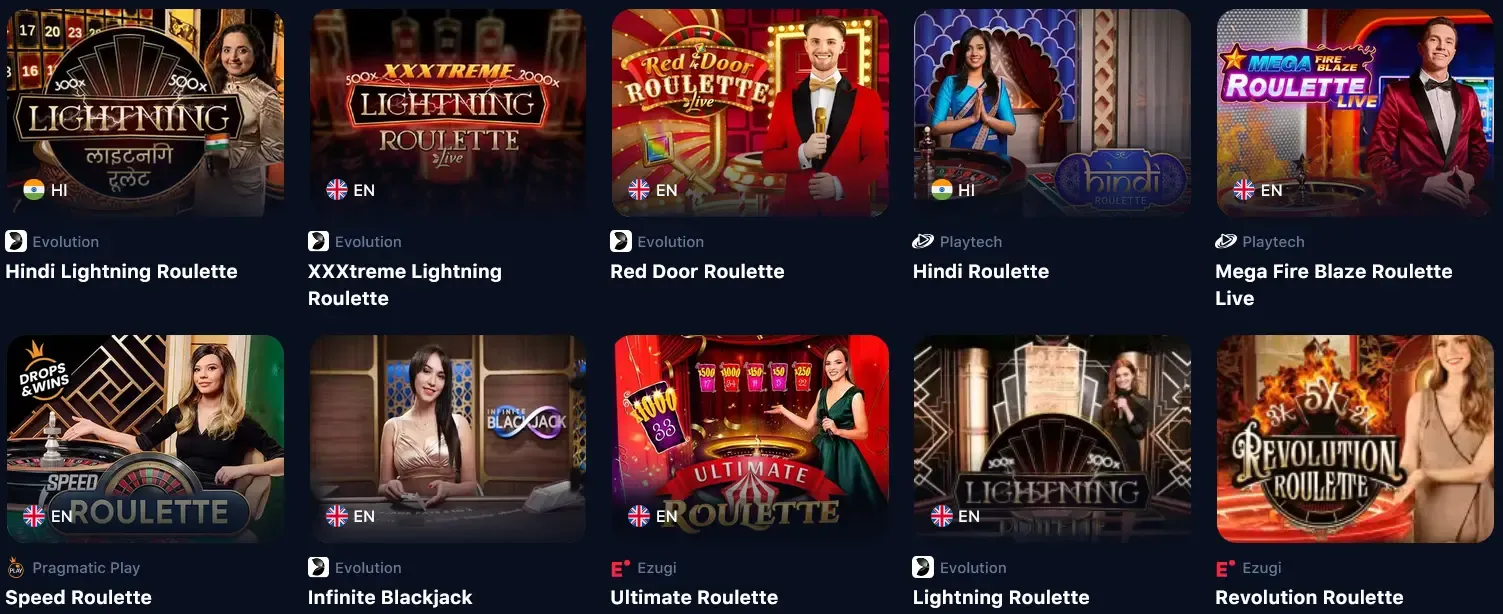 Live Casino boтАШlimidagi barcha oтАШyinlar HD sifatida translyatsiya qilinadi, bu esa oтАШyin jarayoniga toтАШliq kirish imkonini beradi. Professional dilerlar bir necha tillarda soтАШzlashadi va oтАШyinchilarga yordam berishga tayyor. Shuningdek, oтАШyinchilarga stol atrofida boshqa oтАШyinchilar bilan suhbatlashish uchun chat funksiyasi mavjud.