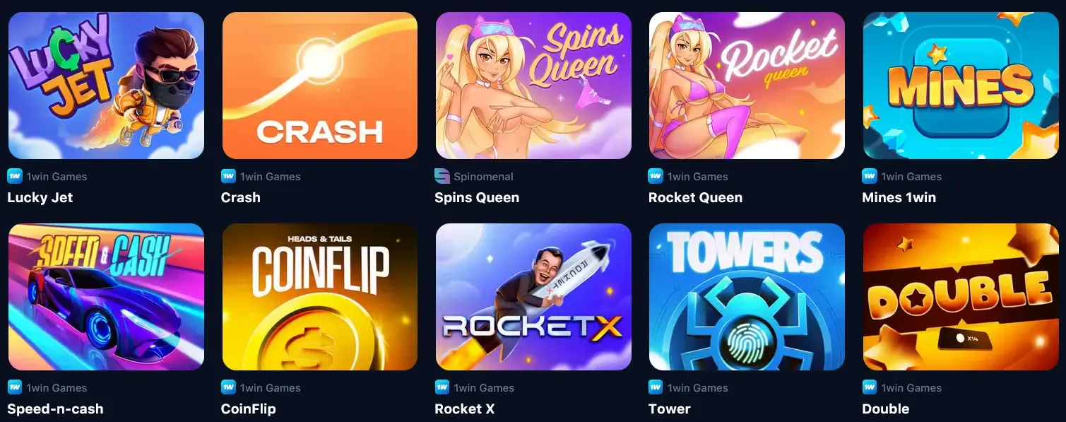 1Win Games boтАШlimida onlayn-kazino tomonidan yaratilgan oтАШziga xos mini-oтАШyinlar kolleksiyasi taqdim etilgan boтАШlib, ular sodda qoidalar va yorqin grafikalar bilan ajralib turadi.