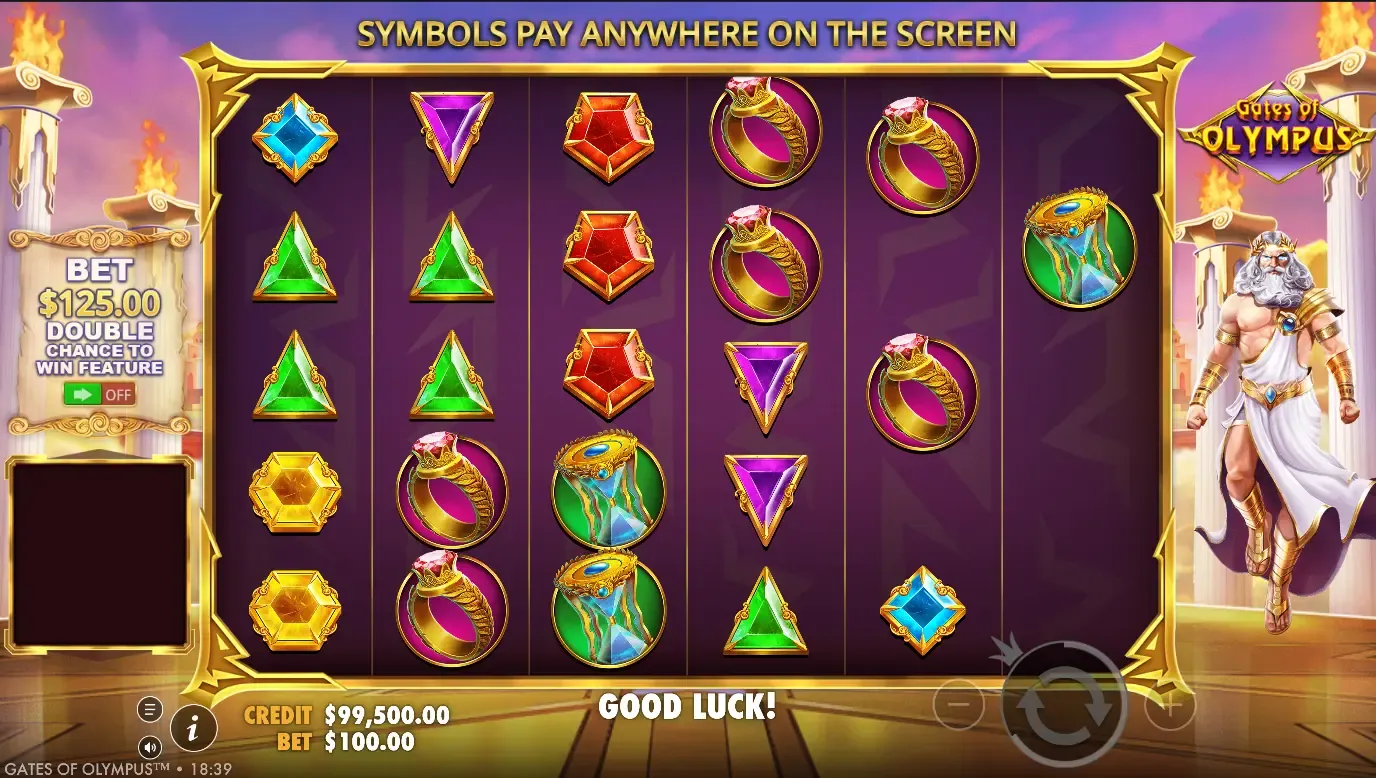 Gates Of Olympus oltita gтАЩildirakka ega boтАЩlib, har bir gтАЩildirakda beshta belgi koтАЩrsatiladi. Bu oтАЩyin anтАЩanaviy slot mashinalaridan farq qiladi. Bu yerda belgilar aylanmaydi, balki yuqoridan tushadi.