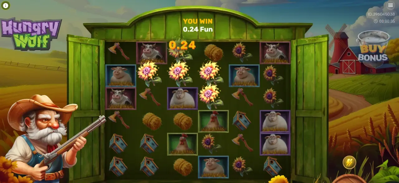 Asosiy oтАЩyin aylanishlari davomida BoтАЩri belgilari 6├Ч6 maydonchada tasodifiy tarzda tushadi. Paydo boтАЩlganda, Fermer sahnaga kiradi va nishon oladi, natijalar keyingi oтАЩyinga sezilarli taтАЩsir qiladigan shubhali lahzalarni yaratadi.